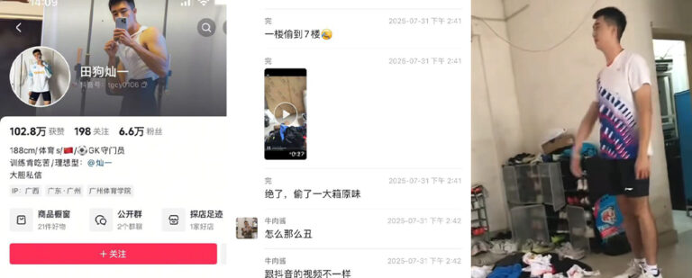 偷原味被抓?抖音体育生网红田狗灿一翻进体校盗取内衣被抓现行
