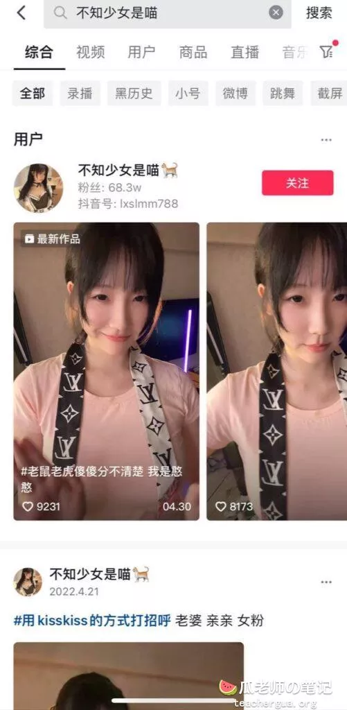 抖音68万粉丝 网红主播不知少女是喵 直播间闪现漏点 全程视频 流出