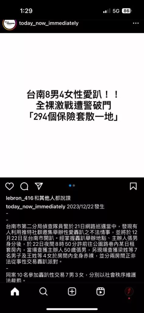 294个套套!台南8男4女疯狂银趴全果激战遭破门全员被捉